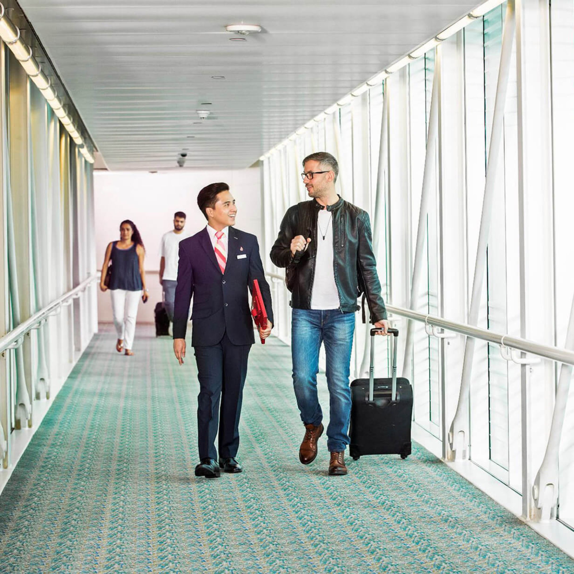 Enjoy hassle-free travel with our transfer. Our welcoming staff will meet you on arrival and fast-track you through the transfer desk formalities in a group of no more than five travellers. While you wait for your next flight, you can relax in our exclusive lounge for an additional charge.